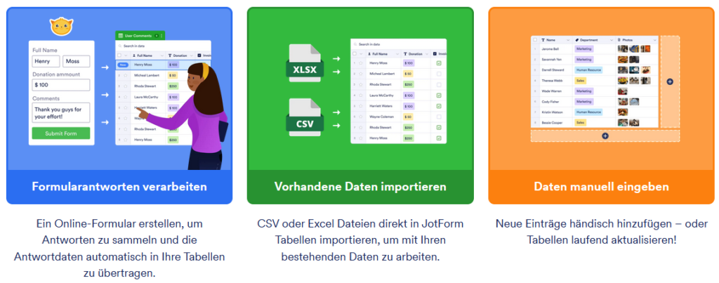 JotForm Tabellen